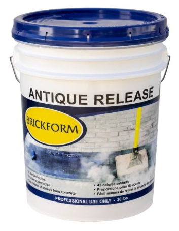 BRICKFORM Antique Release imparts a second color while serving as a bond breaker for stamping. It is made from a finely ground formula that creates beautifully antiqued and textured concrete surfaces. Antique Release is available in 42 standard colors. Covers 800-1000 square feet per pail.