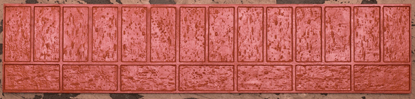 Running Soldier Course New Brick Band Tool – Regular (BT600) Proline Running Soldier Course New Brick Band Tool (BT600) features a single row of 4″ x 8″ new bricks in a soldier course layout with a running brick pattern on one side. This band tool is ideal for creating clean, professional borders and accent strips in stamped concrete projects.