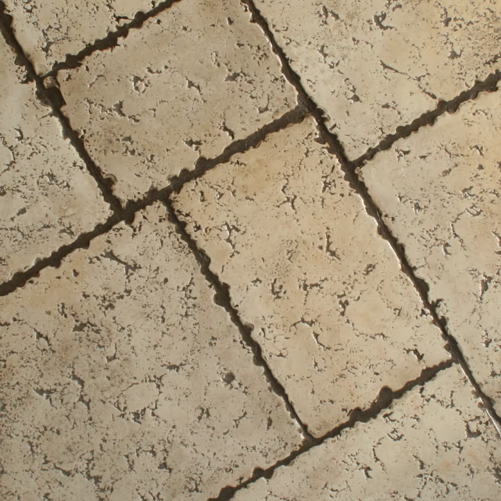 Beautiful tumbled travertine look in a classic Ashlar Versailles pattern. This two-part system (A and B) creates a natural, random layout with the soft, elegant texture of tumbled travertine. Durable, low-maintenance, and easy to use, these stamps deliver outstanding realism and a timeless European-style appearance.