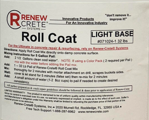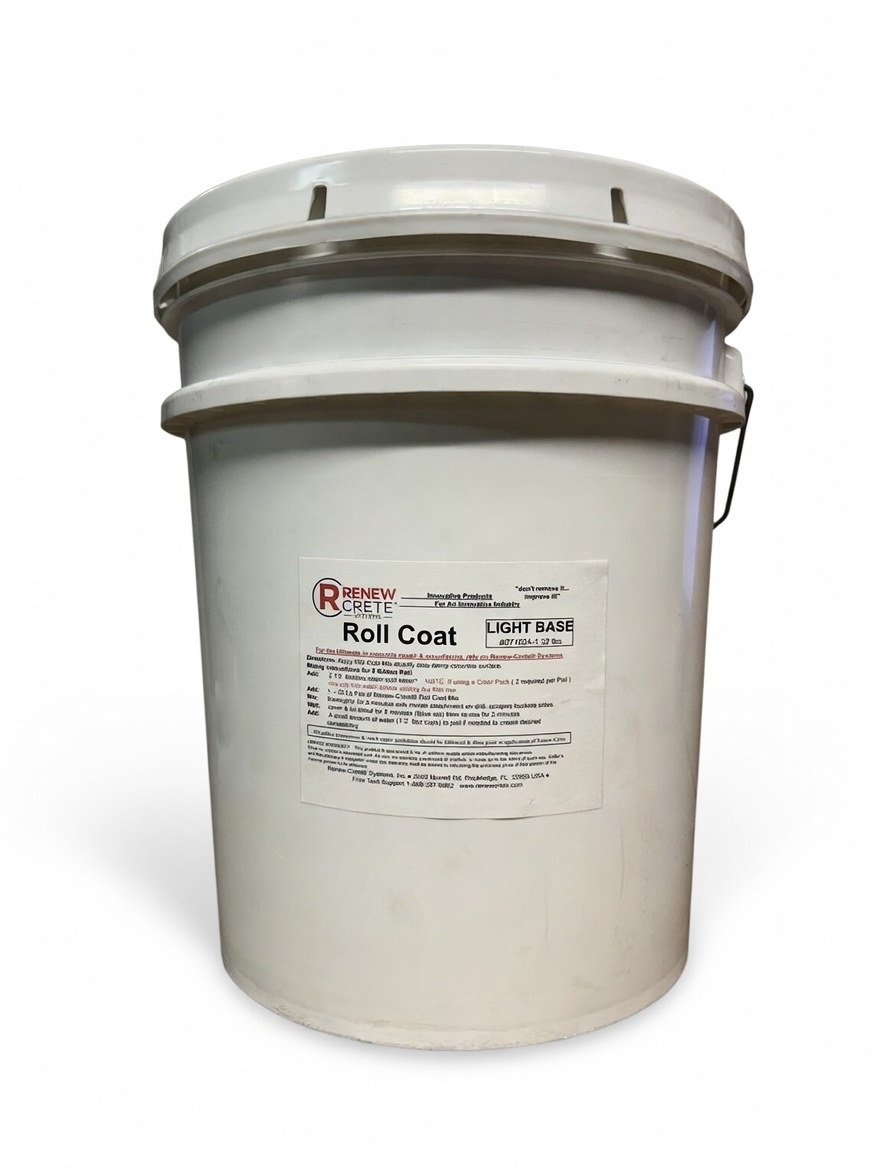 Roll Coat is a blend of Portland cement and polymer used to color any unsealed concrete surface. Roll Coat can be used to re-color old stamped concrete projects or to blend multi-pour projects that have color issues. One 5 gallon pail is mixed with 2 color packs** and should cover 400-600 ft. **Color packs Sold Separately. See related products below to select.