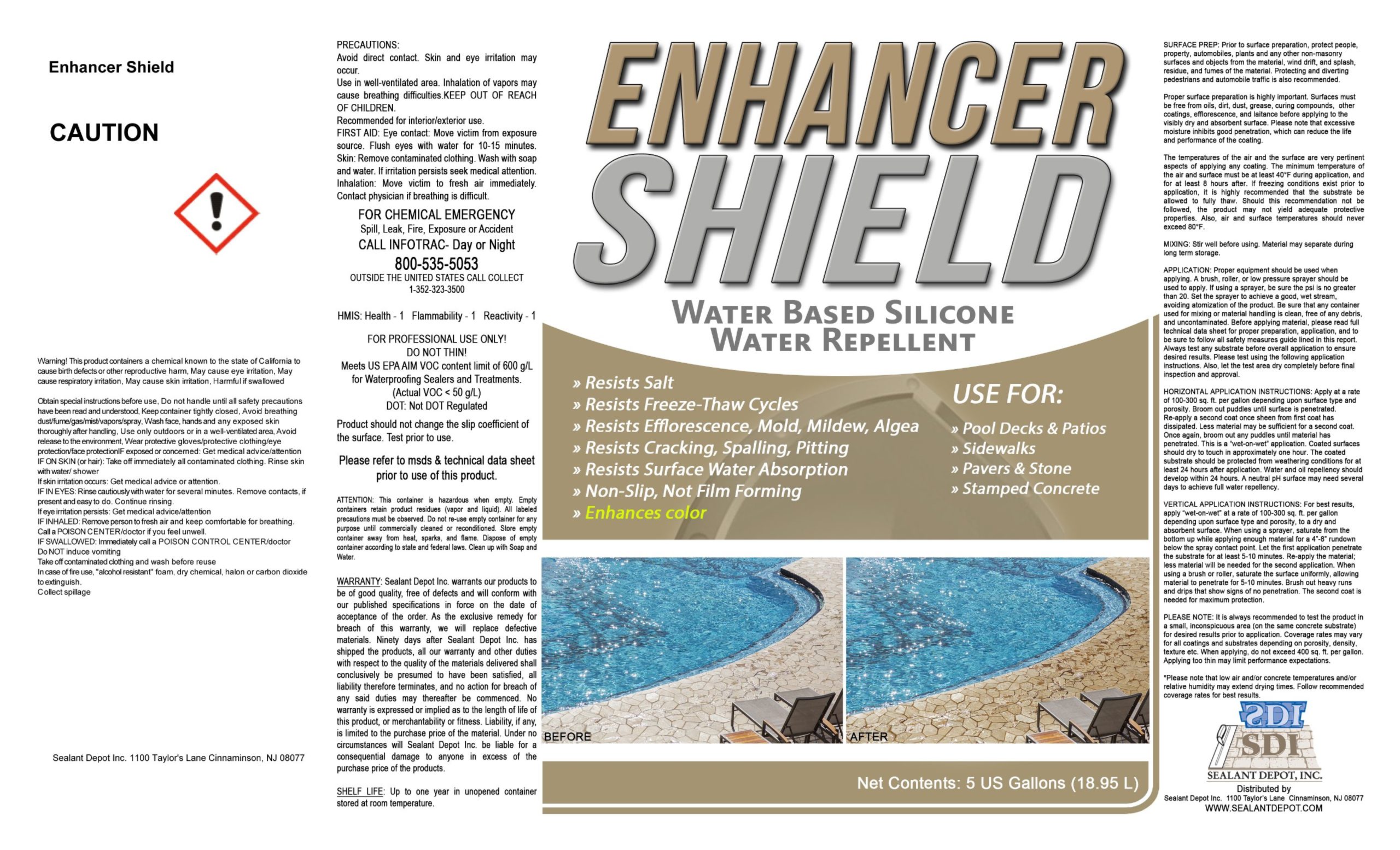 Important Shipping Notice – Hazardous Material Due to the hazardous nature of this solvent-based product (flammable liquids class, per DOT regulations), SDI Enhancer Shield SB. We cannot ship this item via UPS, FedEx, or standard parcel carriers. We do have freight rates at checkout. Thank you for understanding—this policy keeps everyone safe and complies with federal hazardous materials shipping rules.