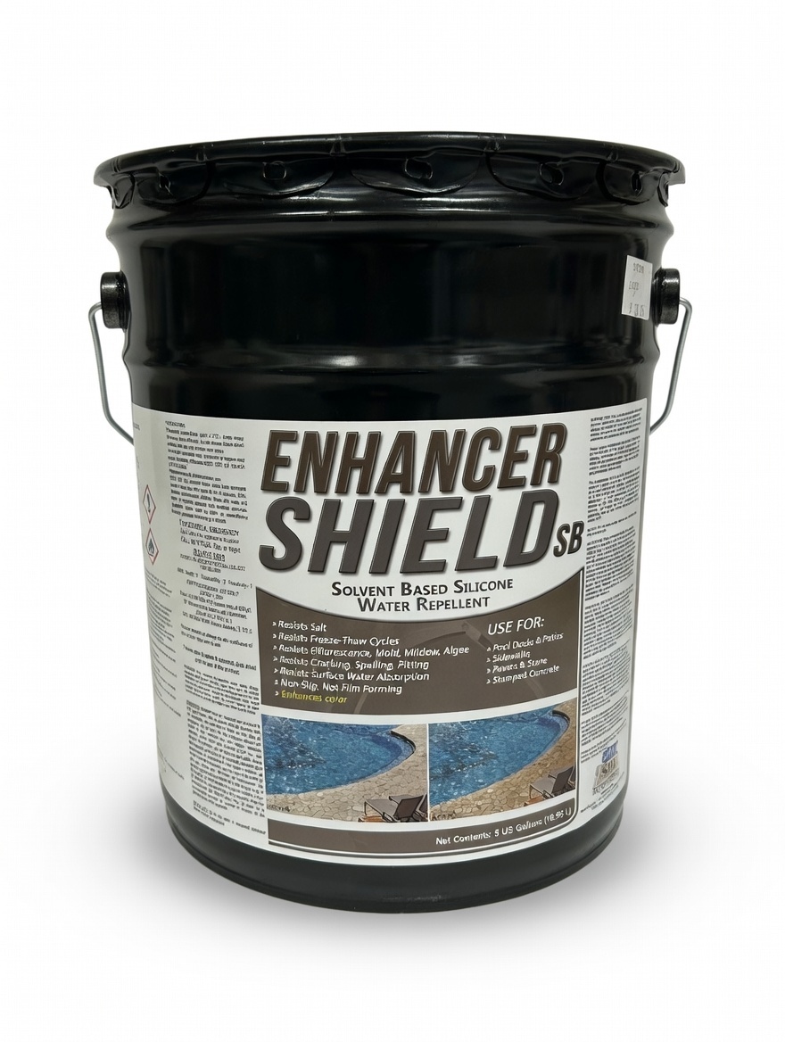 SDI Enhancer Shield SB is an active solvent-based silicone water repellent and impregnating sealer designed for porous masonry surfaces. It penetrates deeply to protect concrete, brick, block, and stone while enhancing the natural color with a subtle wet-look effect and no surface film build.