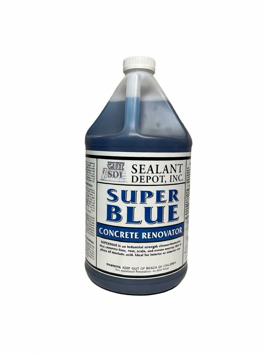 Super Blue is a mild acidic detergent that etches and cleans any concrete surface. Its use is recommended prior to apllying stain to enhance the color and penetration of the stain as wel as increase adhesion of the sealer. It is not necessary to neutralize before sealing. Dilute Super Blue with 3 parts water to 1 part Super Blue, spray or mop over the concrete surface applying liberally. Allow to penetrate for about 5 minutes, scrub lightly with brush or broom then rinse thoroughly and allow to dry completely. If spraying, use acid resistant sprayer.