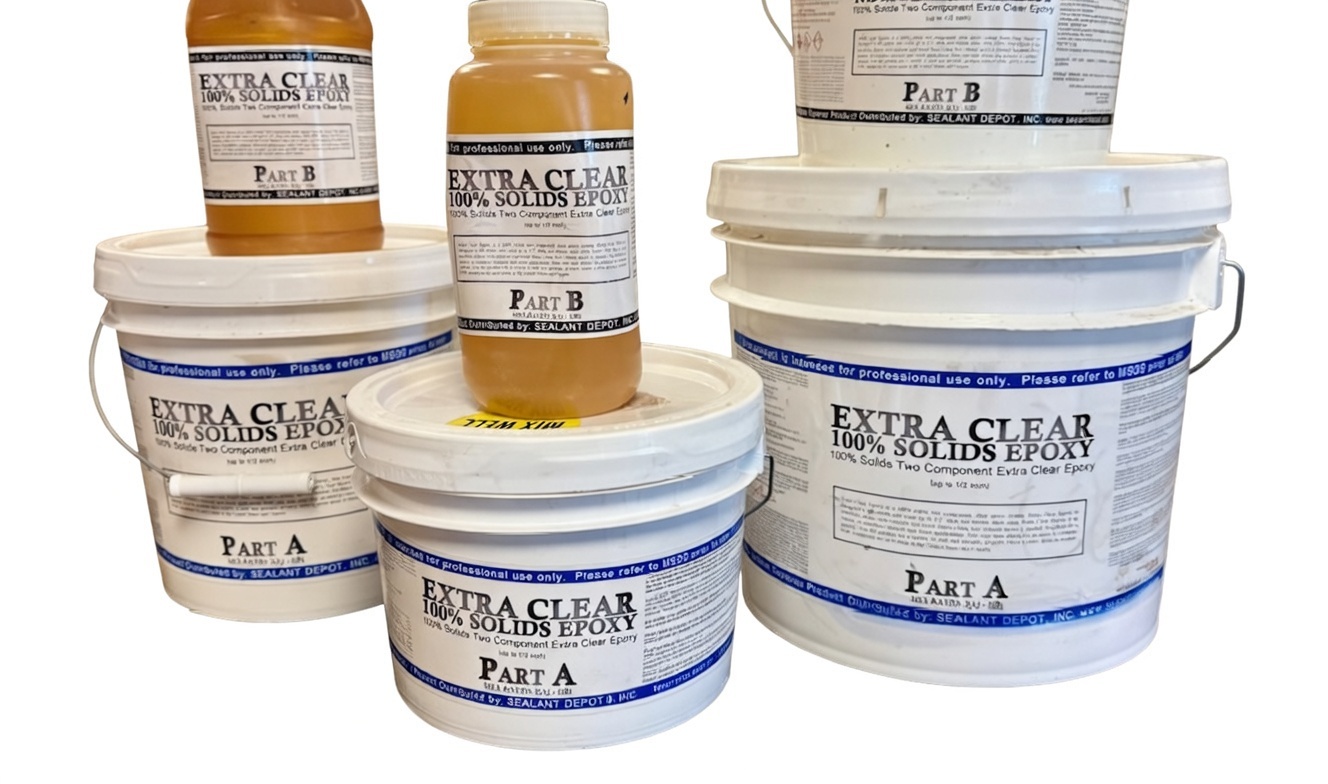 SDI’s Extra Clear Epoxy requires a 2 parts A : 1 part B mixing ratio and is available in 3 different kit sizes.